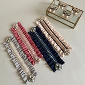 クラシカルなスタイル、同系色コーディネートの他、中央のフリルやビジューのパールなどと同系色のアイテムのコーディネートも楽しめるかと思います。