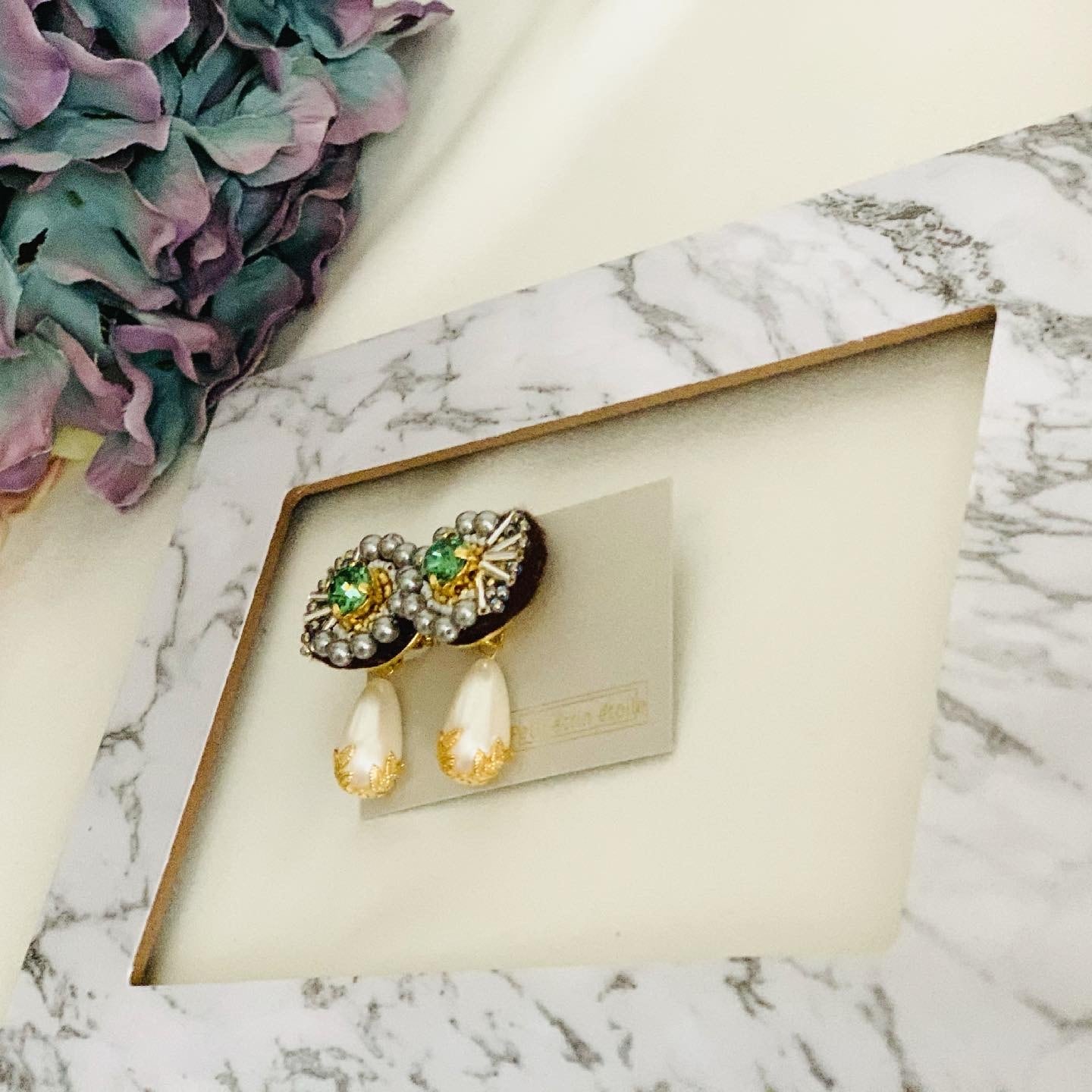 雫型のパールを使用し、ビーズ刺繍の繊細なモチーフを飾ったシリーズです。