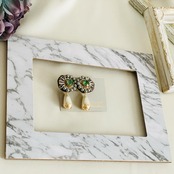 ぶら下がりの雫型パールには、下部にツタのようなゴールドの花座を飾りアンティークなテイストに仕上げました。