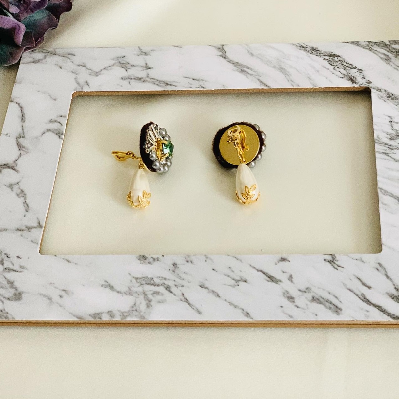 イヤリング:金具はずれ落ちにくいクリップタイプを使用しています。