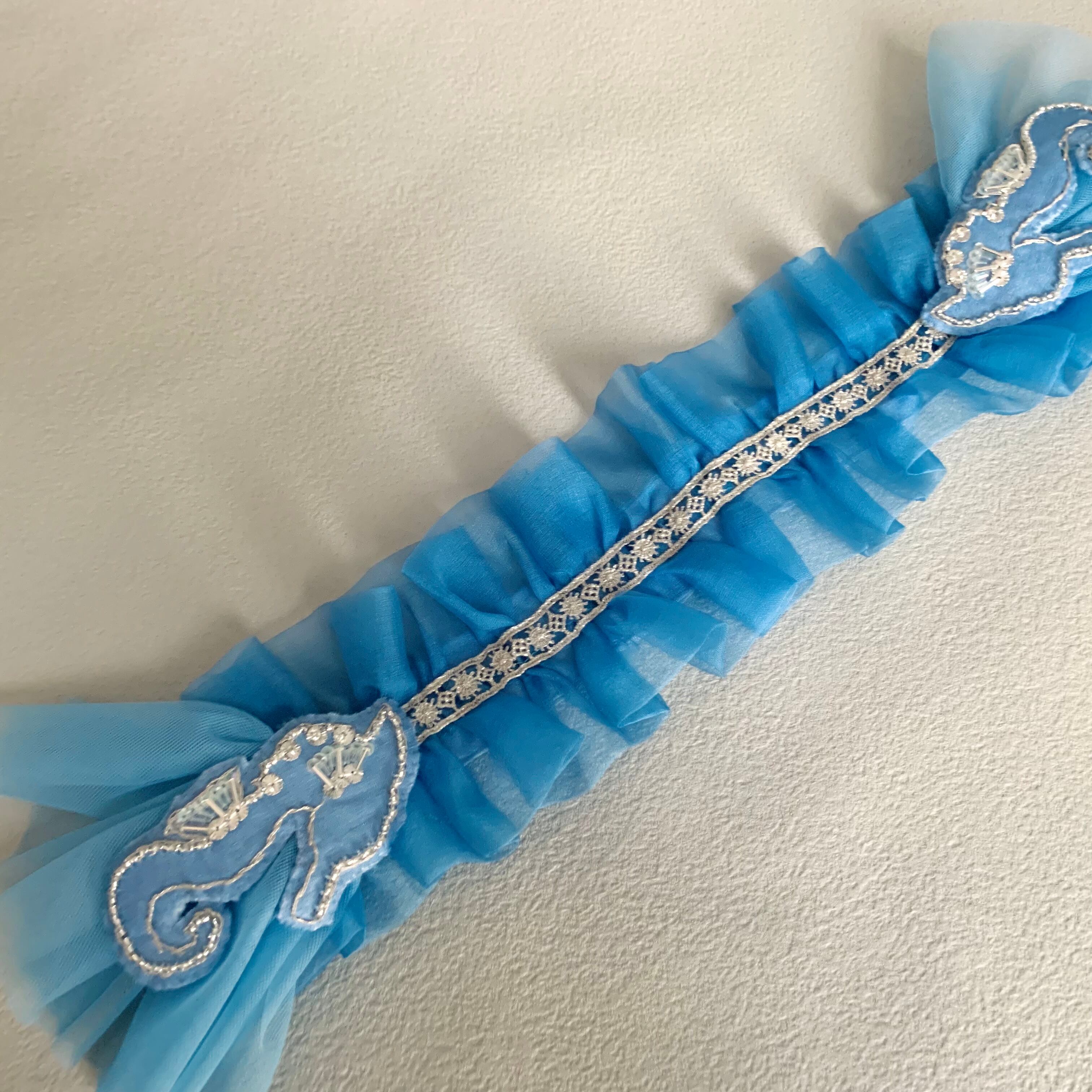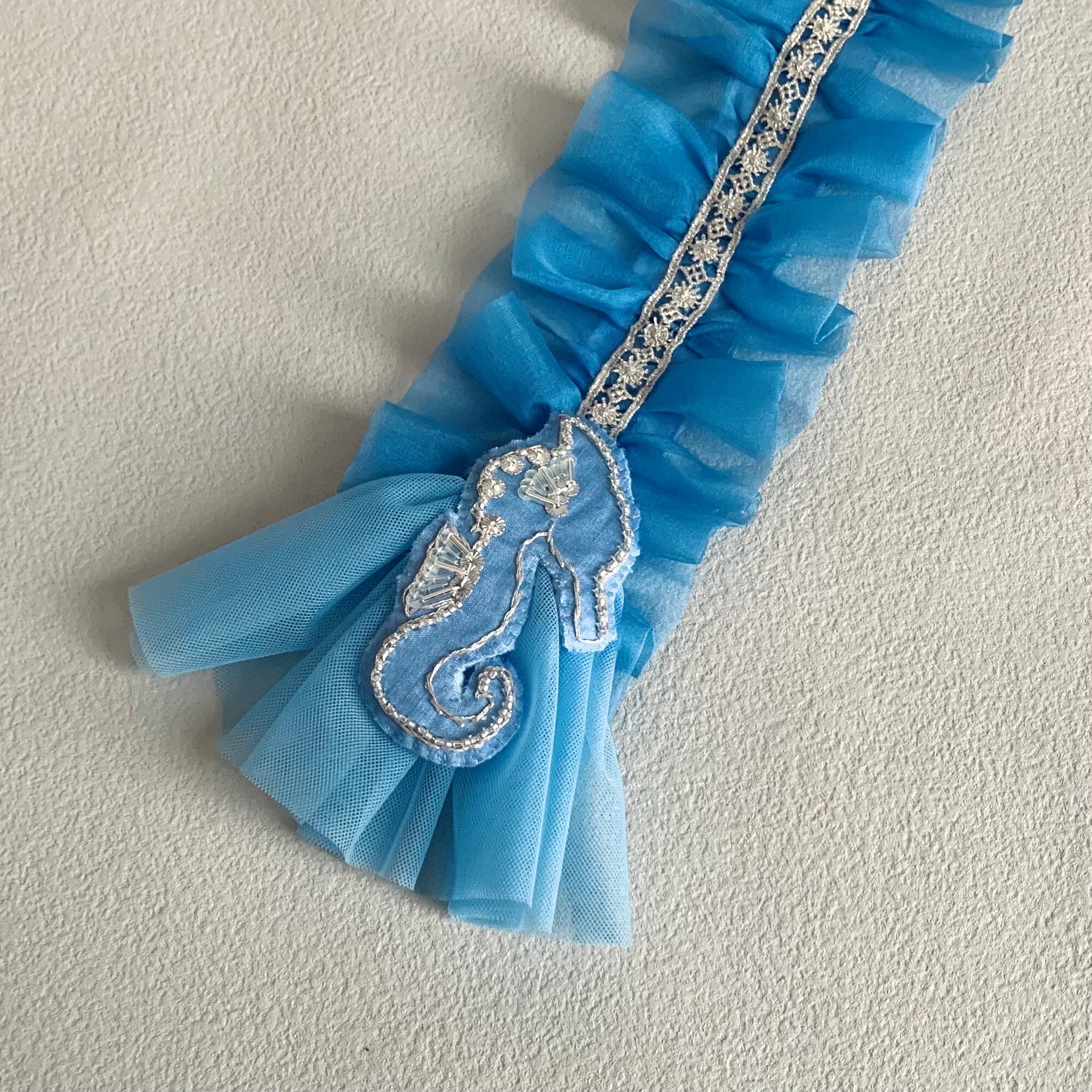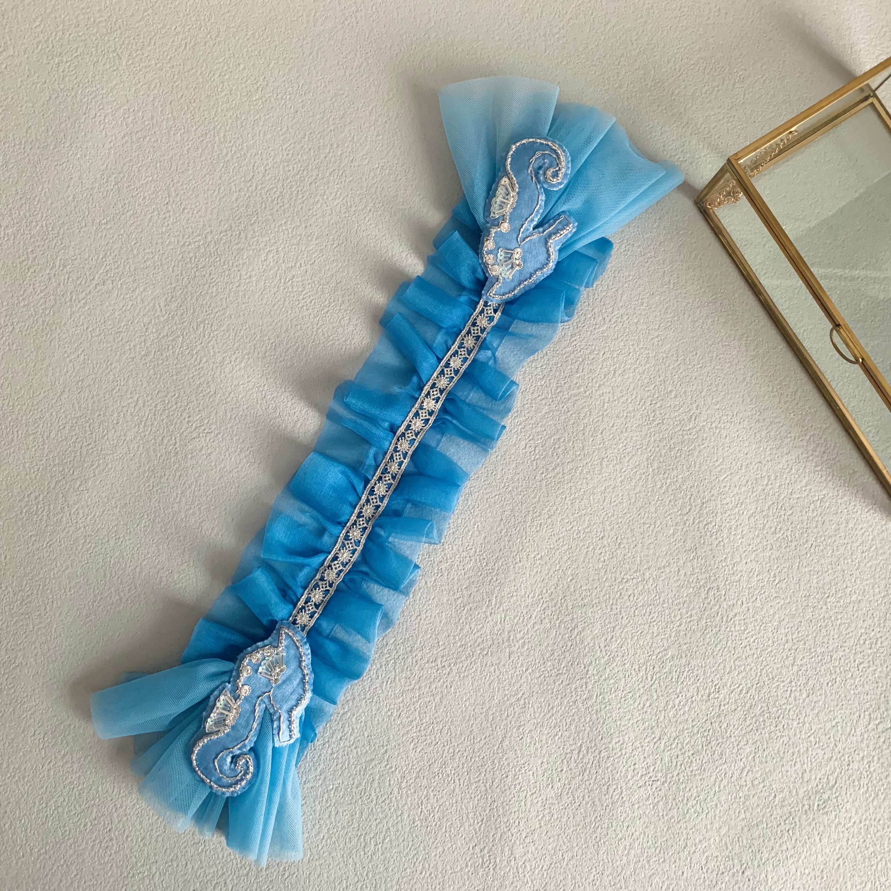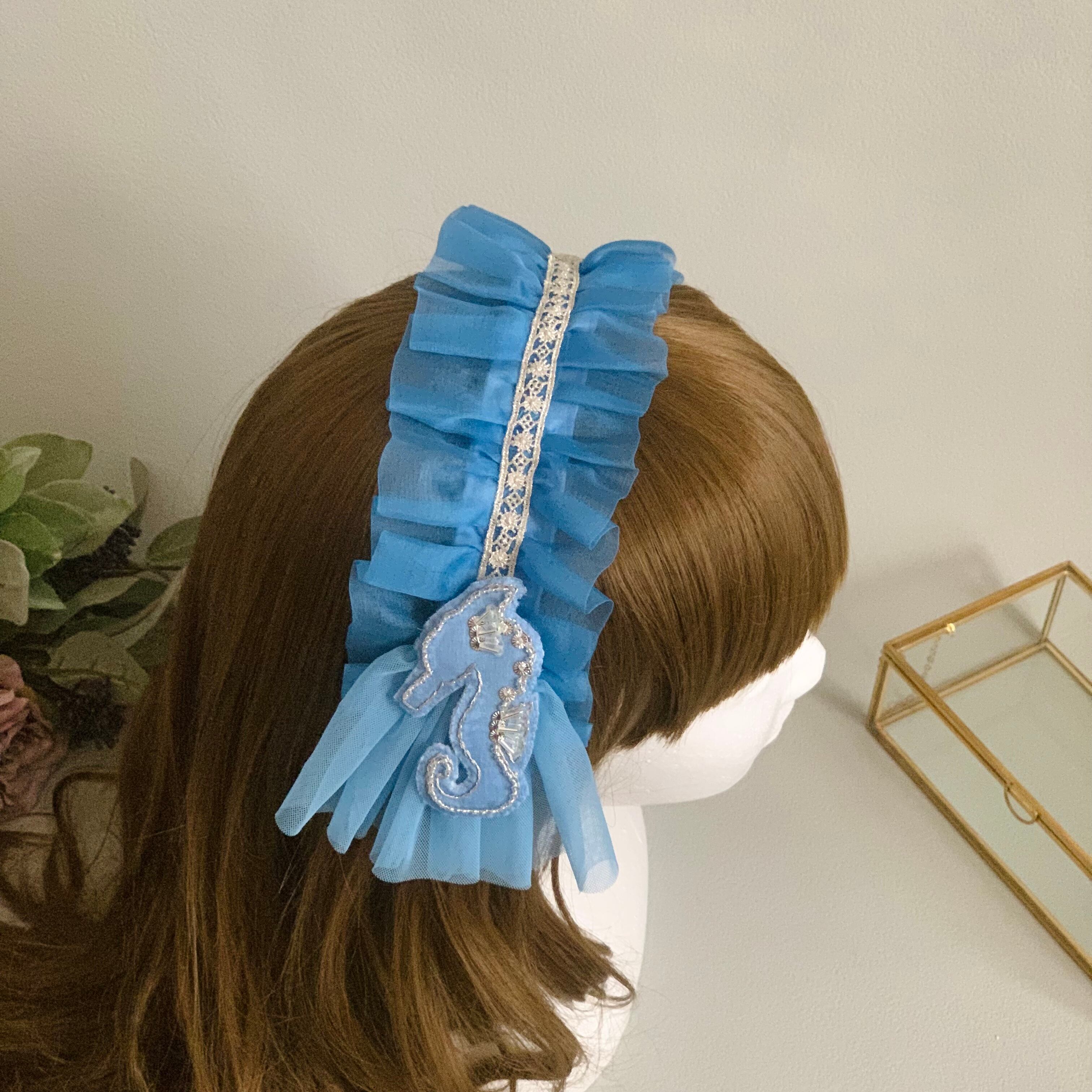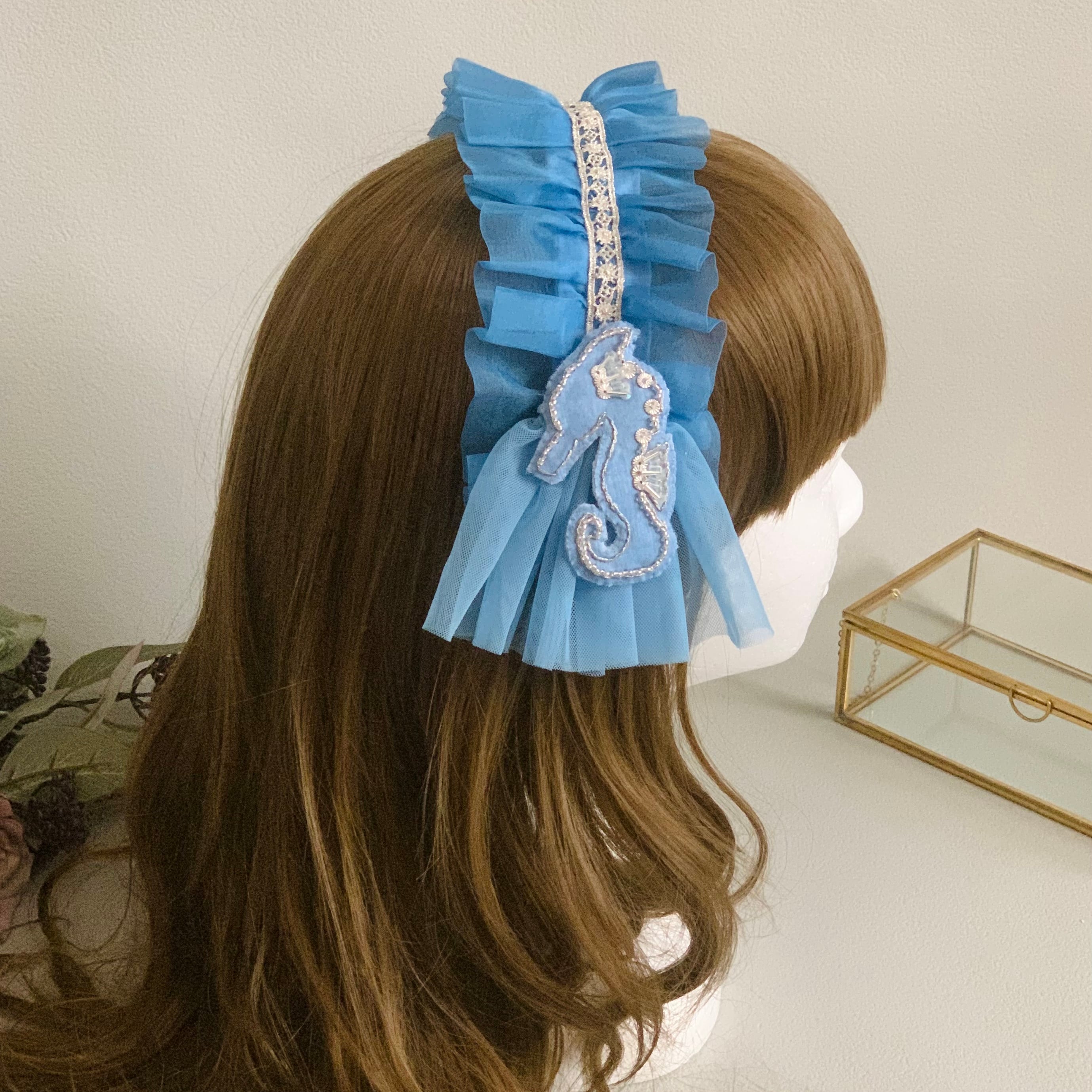 タツノオトシゴの刺繍モチーフを飾ったヘッドドレスです。