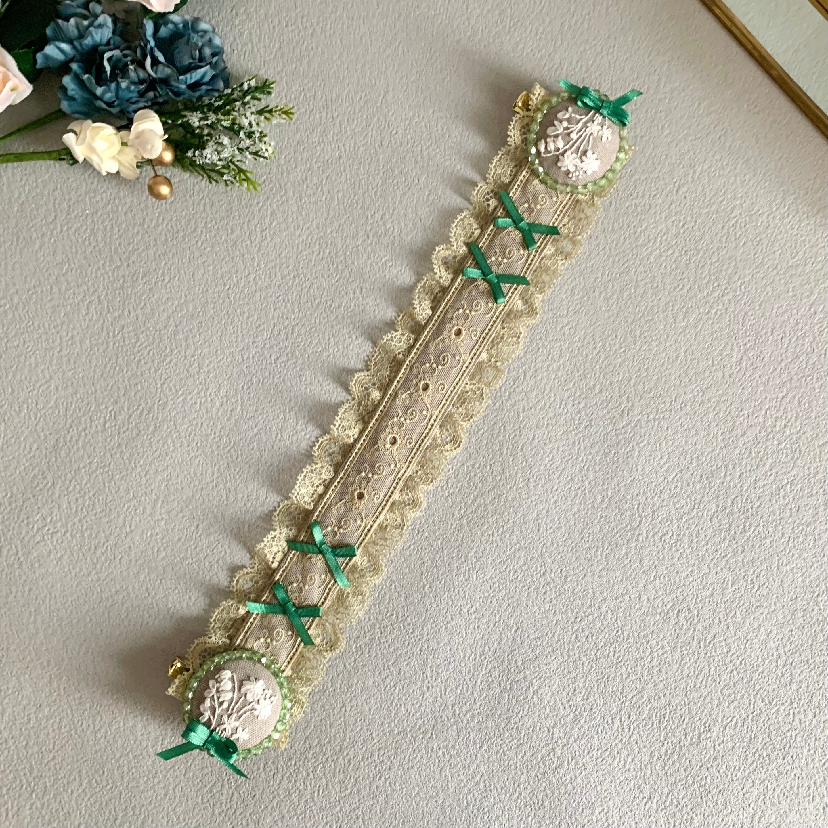 白いお花の刺繍と小さなリボンのヘッドドレスです。