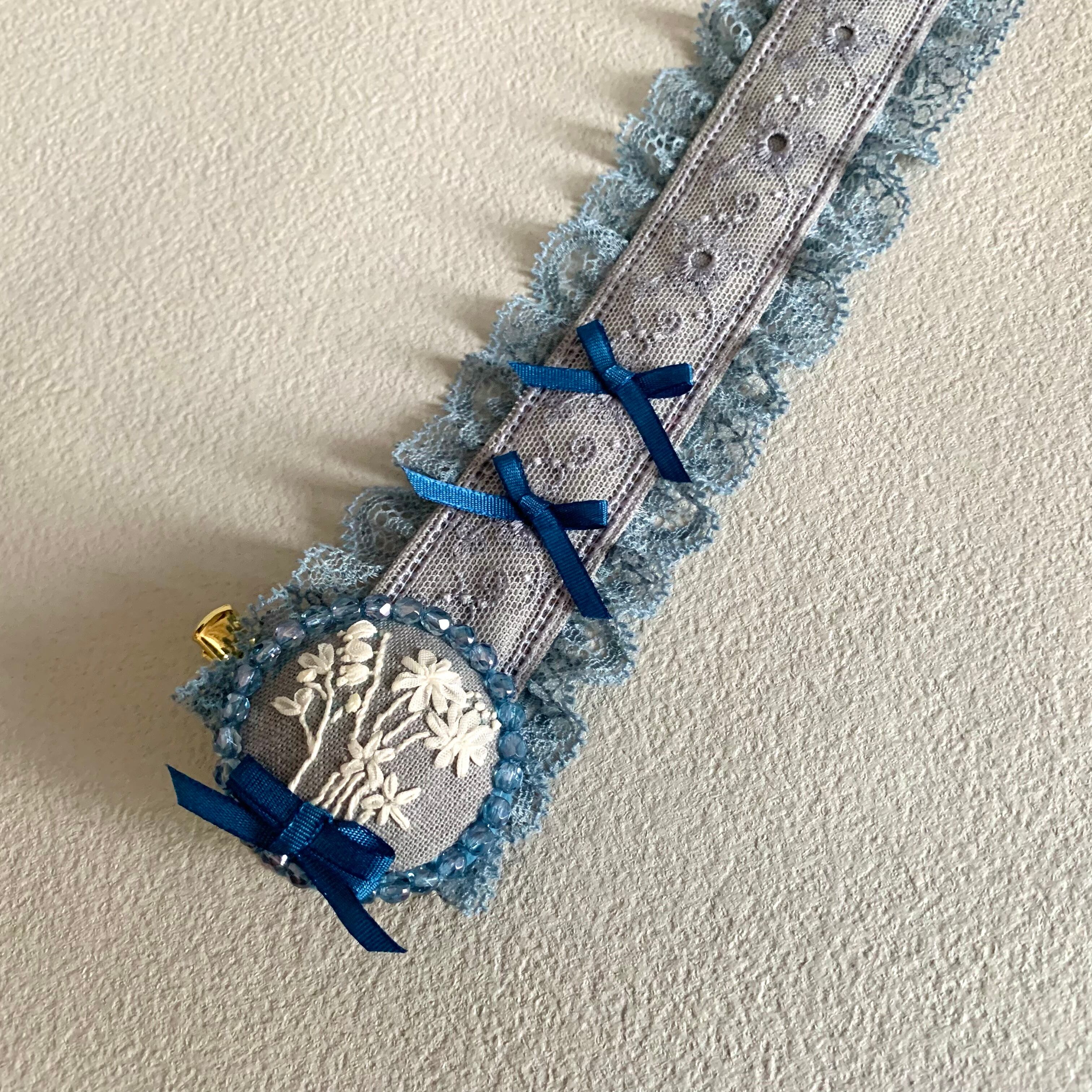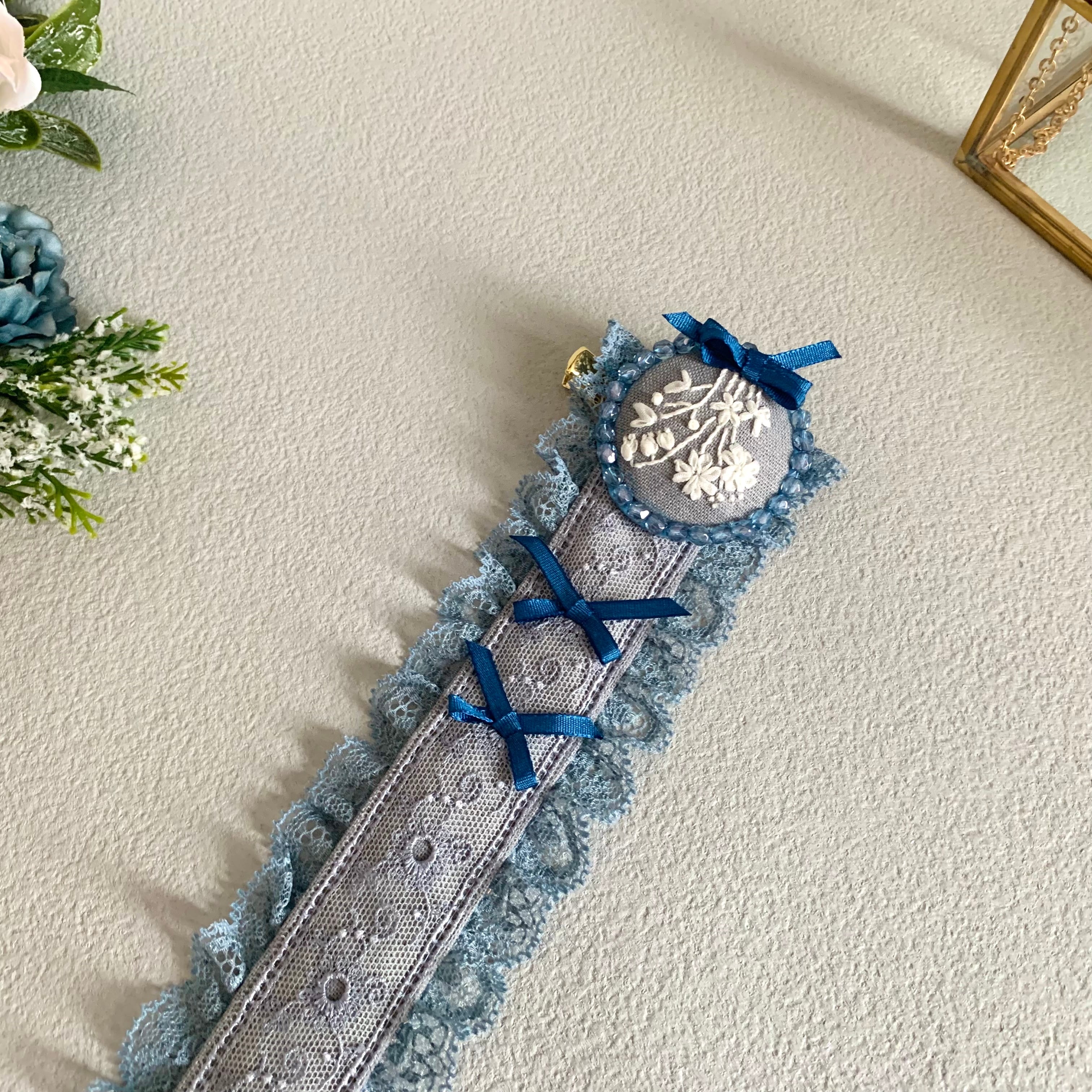 白いお花の刺繍と小さなリボンのヘッドドレスです。