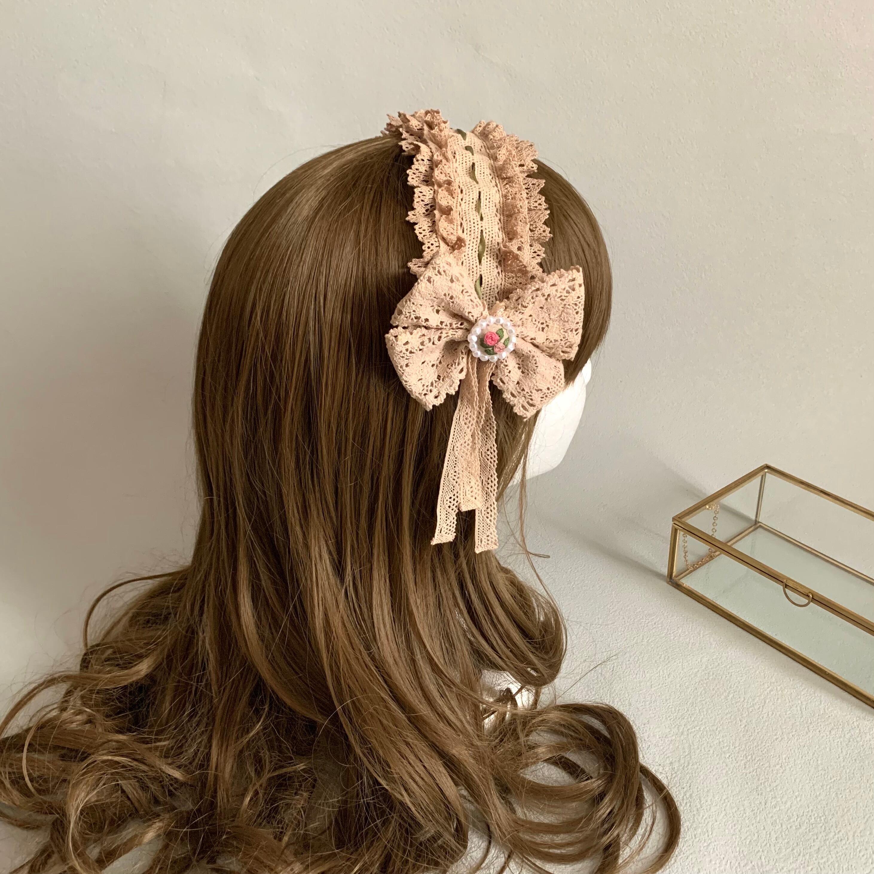 rose milk ヘッドドレス (tea ピンク×くすみピンク)