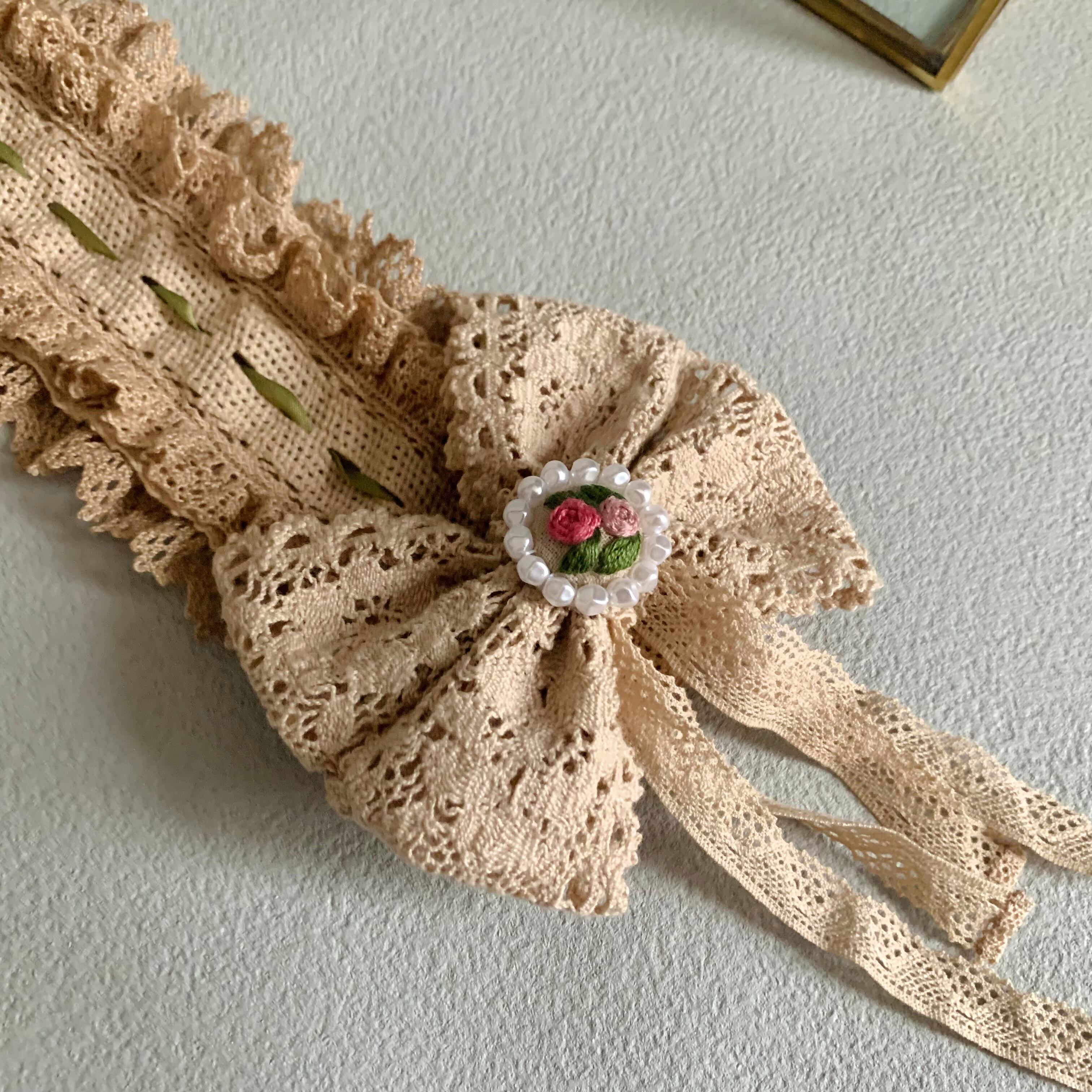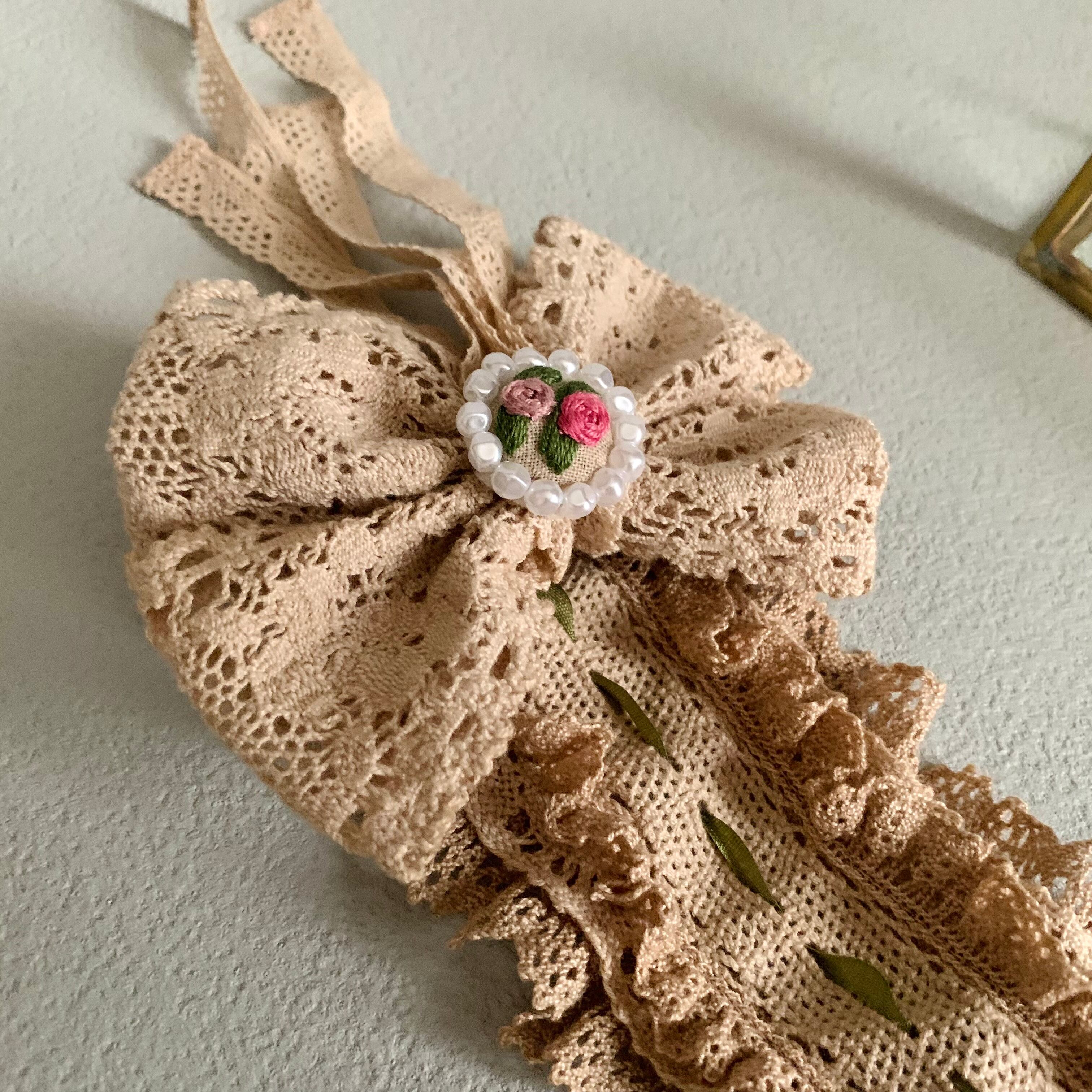 リボンはピン付きのため取り外すことが可能のためブローチとして使用していただくこともできます。(つけ外しの際は生地やレースのひっかけに十分ご注意ください)